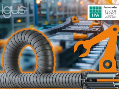 I takt med att efterfrågan på elbilar ökar, ökar också behovet av högkvalitativa litiumjonbatterier. Av denna anledning bör de idealiskt tillverkas i så kallade torra renrum med minimal luftfuktighet och så få partiklar som möjligt. Samtidigt måste automation användas i denna miljö eftersom människor inte får vistas i torra renrum under längre perioder. För att säkerställa en säker och tillförlitlig energiförsörjning för robotar har specialisten på rörelseplaster igus utvecklat triflex R TRC: det första robotsystemet för energiförsörjning med torr renrumscertifiering från Fraunhofer IPA för ISO klass 4-5.